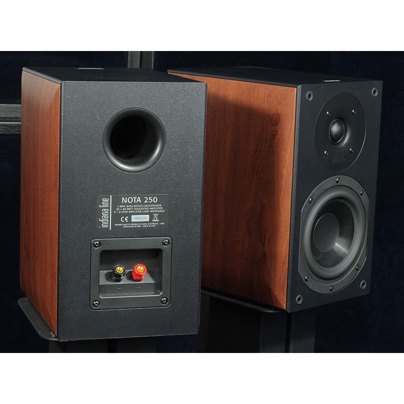 Indiana Line Nota 250 X je regálový model zcela nové řady Nota X pro kterou jsou typické černě matné ozvučnice s bočními panely v černošedém dubu a světlém ořechu pro ideální začlenění do moderních interiérů. Dvoupásmová konstrukce osazená vysokotónovým reproduktorem s 26mm hedvábnou kalotou a středobasovým reproduktorem s PP membránou.