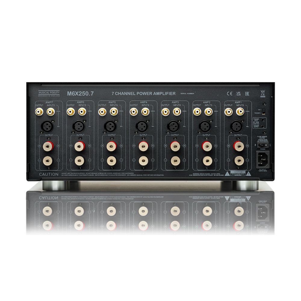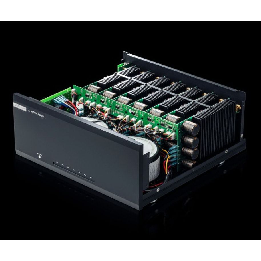 Vícekanálový zesilovač Musical Fidelity je zkonstruován s jedním 250W zesilovačem třídy A/B na kanál. Zesilovač zní velmi přirozeně, zachovává všechny přechodné jevy a detaily.