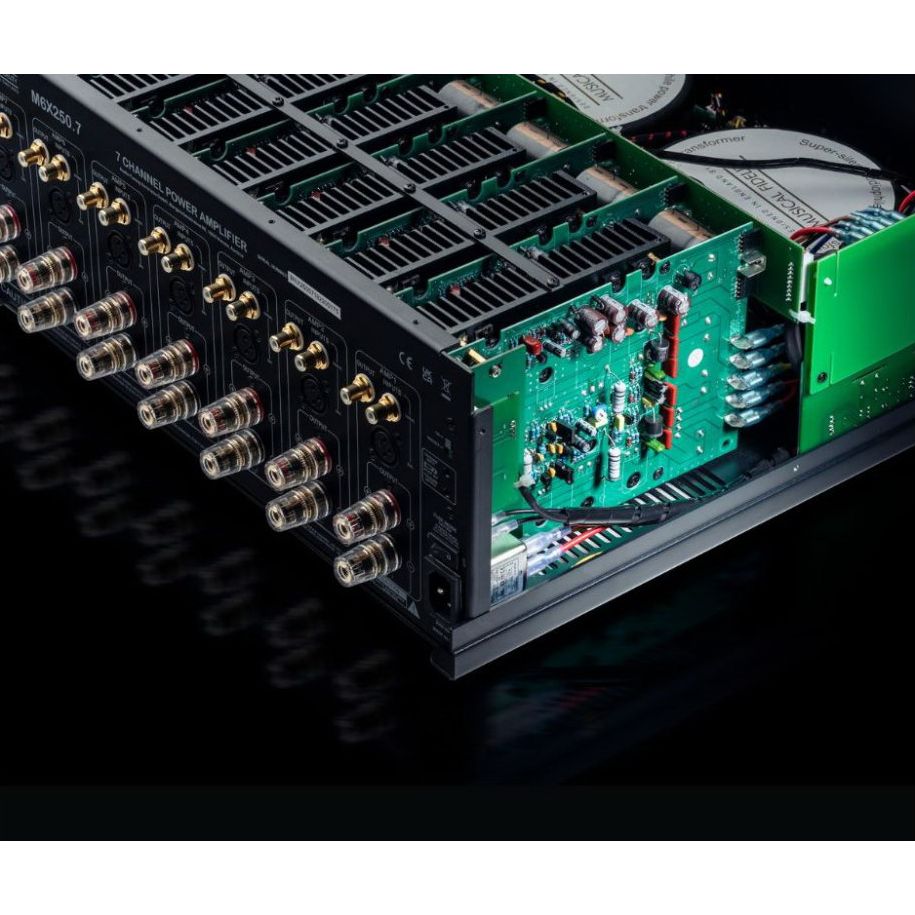 Super tichý napájecí transformátor distribuuje čistý výkon do zesilovačů, což má za následek vysoký dynamický rozsah a detailní zvukovou scénu. M6x 250.7 je díky tomu schopen zachovat všechny detaily a emoce, bez ohledu na hlasitost.