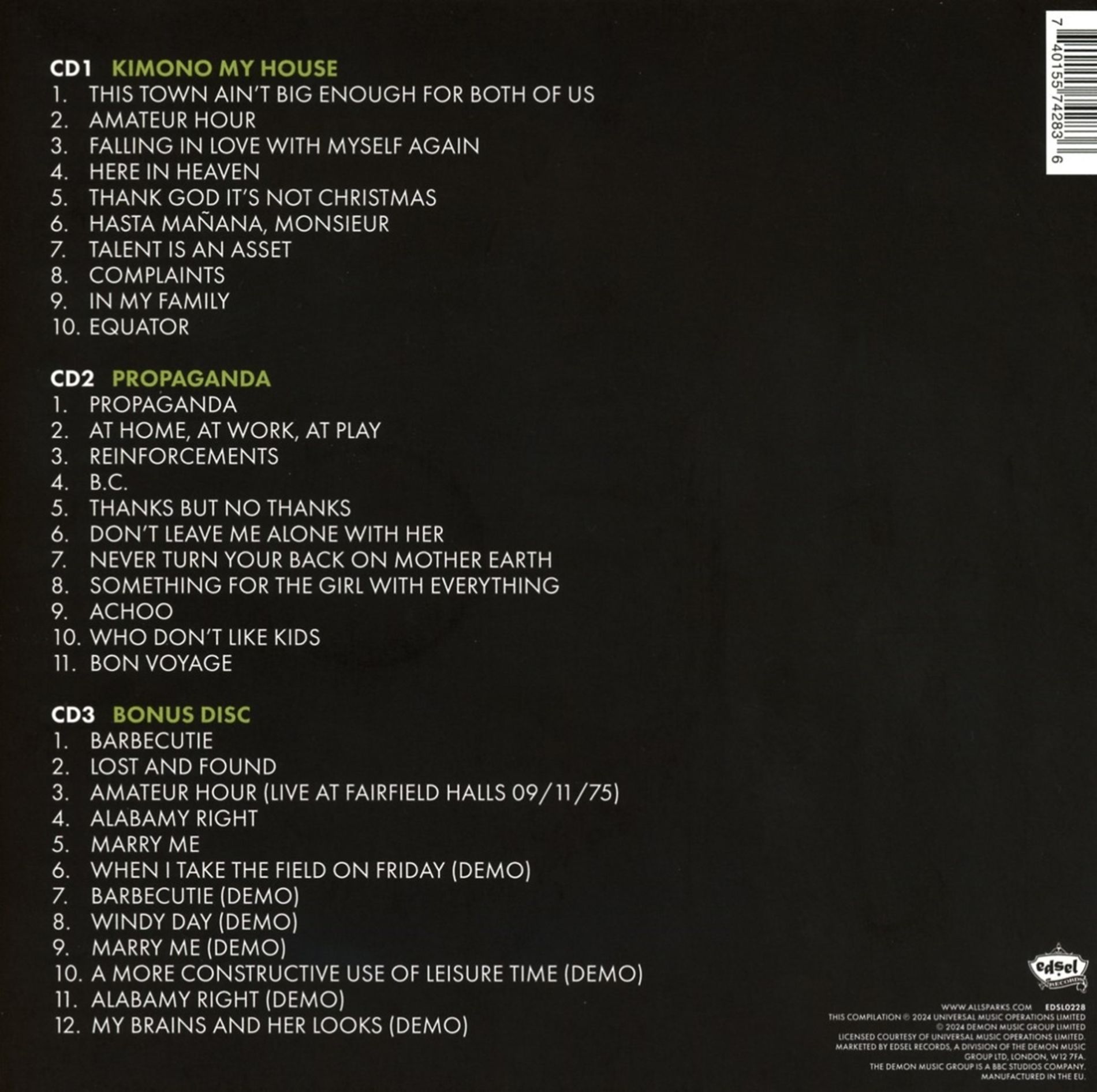 Sparks - Kimono My House-Propaganda / 3CD